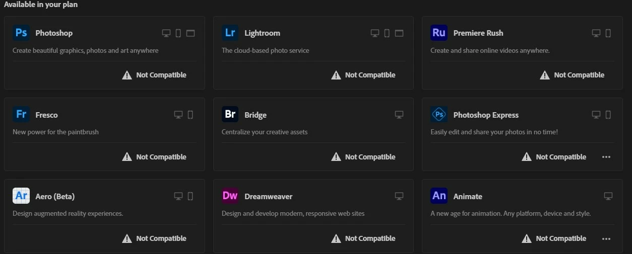 Very long time Adobe Creative Cloud not opening in Window laptop. April 2023 App update notification came on windows notification I gave updation suddenly Adobe CC app open & update. Before updating photoshop working fine, after updation photoshop start while opening crashing. I uninstall & tried to reinstall photoshop, shows not compatible. My windows 11 is up to date. Right now illustrator, indesign working fine, but i can't update same compatible issue. Device Spec: Processor: AMD Ryzen 9 5900HX with Radeon Graphics 3.30 GHz & 16GB Ram