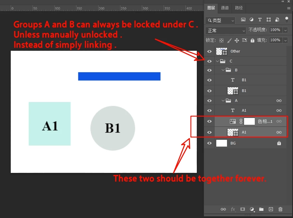 Wish Photoshop had a locked grouping feature, Containment relationships can be locked.