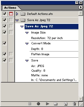 Well, create a new action, title it and then record while I resize the photo, save it & a jpeg options window pops up. I make the selection and the file is saved and closed. I then stop the recording.