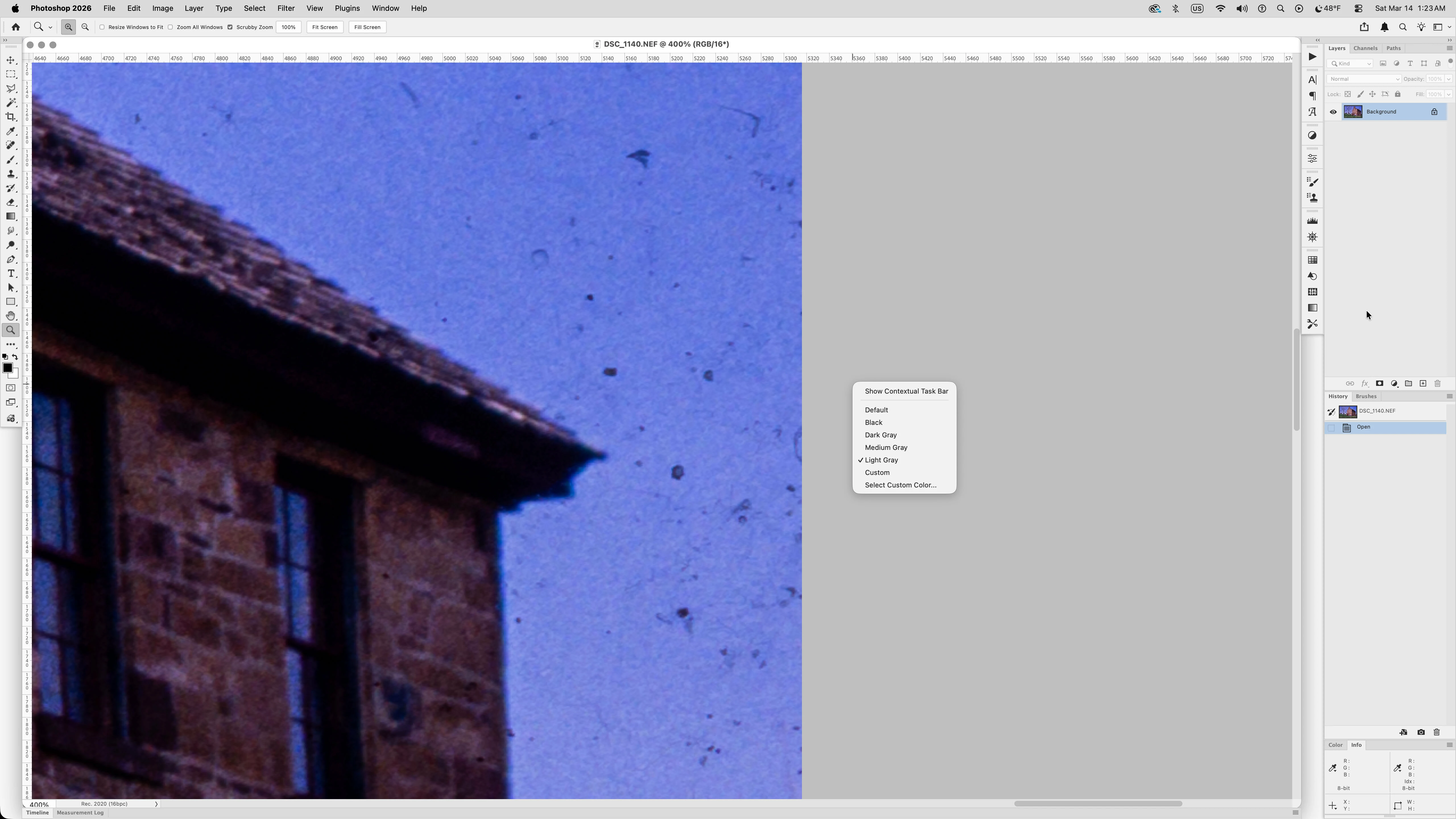 Greetings: Is there a way to make the work space transparent? I didn’t see a way to do that in Preferences. I do a lot of historic image digital restoration for clients and for gallery sales and often work at the pixel level when cleaning edges, and a transparent background helps me find artifacts, etc., when I zoom out. I’m hoping I can make the workspace transparent rather than have to create a huge tranparent canvas. Thanks in advance for any help. -- AC
