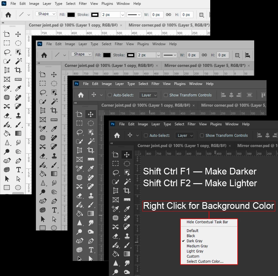 (In Windows) it is a [Right-Click] on the background area and select from the list- for the document window.