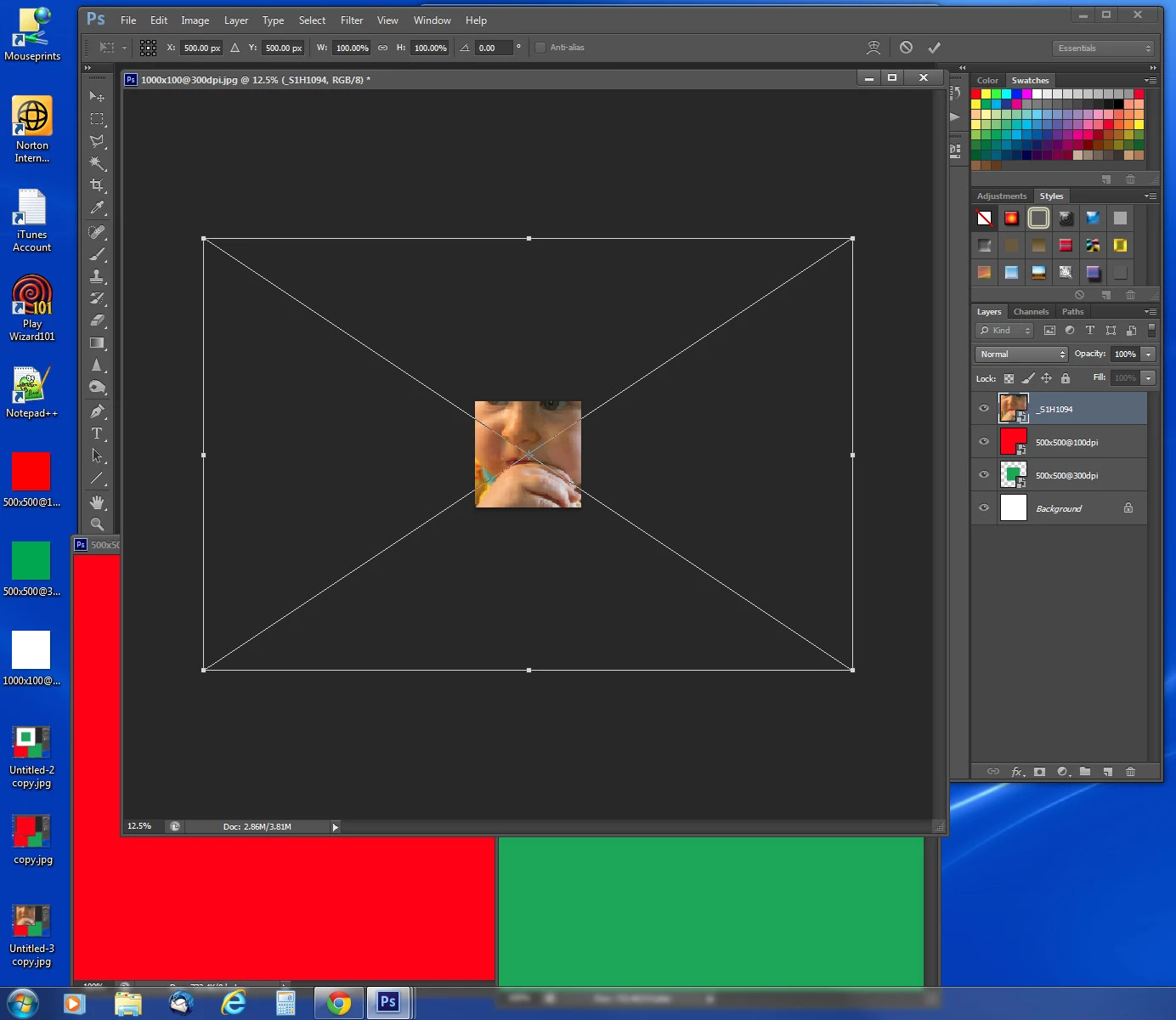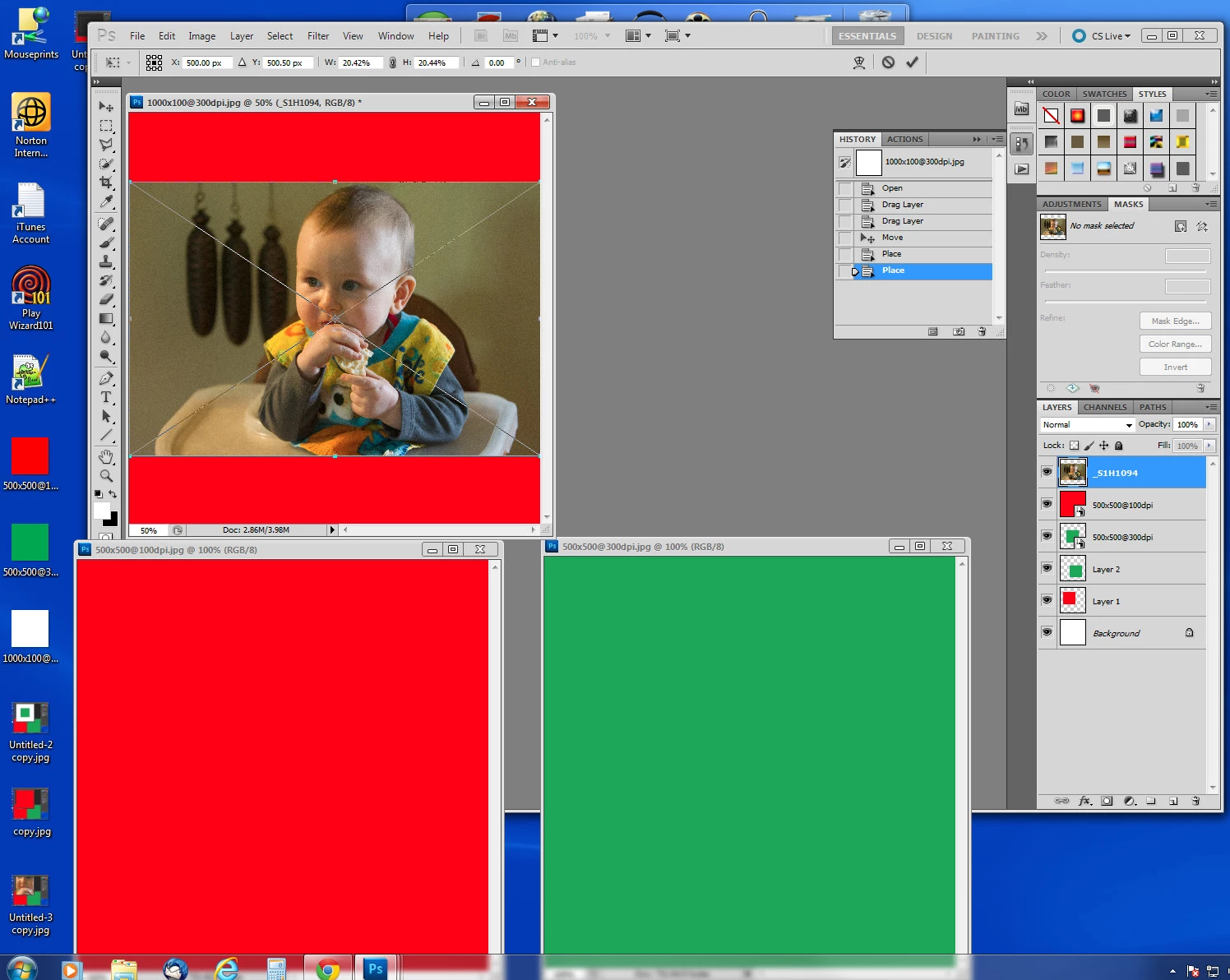 - I can place the image as a smart object. Open the Smart Object. Change the resolution. Save the Smart Object and go back to the document. The image will update to its new size (which is weird to me because I haven't actually changed its pixel size, only it's "virtual physical size".)