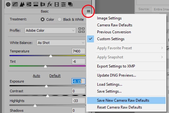 Not quite sure how you do it in Camera Raw, but it's probably Save settings in the menu below the toolbar on the right.
