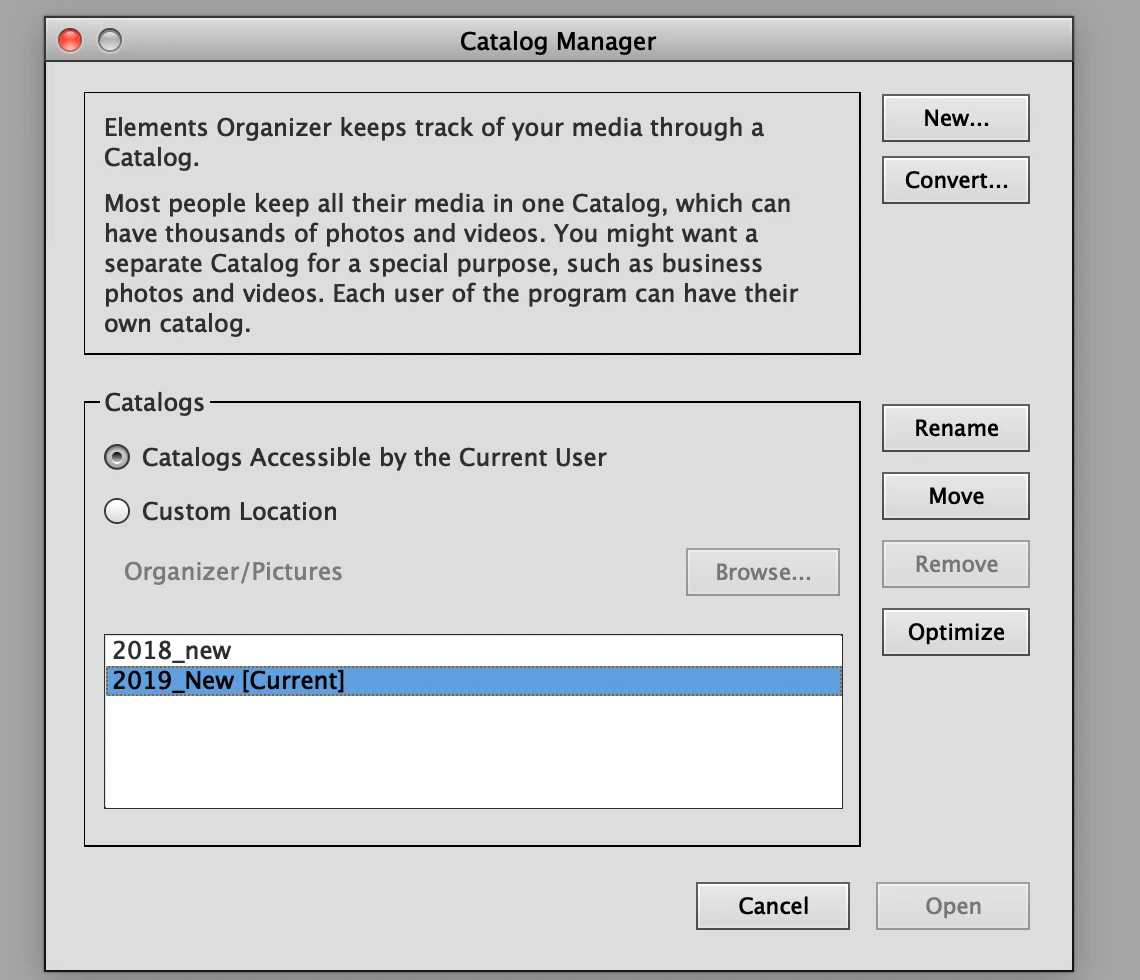 I was having difficulty with PSE 14 on macOS Mojave so followed advice to upgrade to PSE 2019. Now aim having problems with the Organizer Catalog