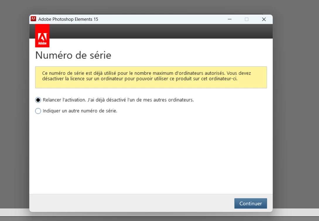 (google trad) Hello, I'm having trouble installing Photoshop Elements 15 on a new PC (Windows 11). Photoshop Elements 15 refuses to activate my license. After contacting Adobe support, I was able to verify (unsuccessfully) that my license was indeed deactivated on my other devices. I also tried reinstalling with my antivirus and firewall disabled.Has anyone else encountered or resolved this type of problem? Thank you for your help.