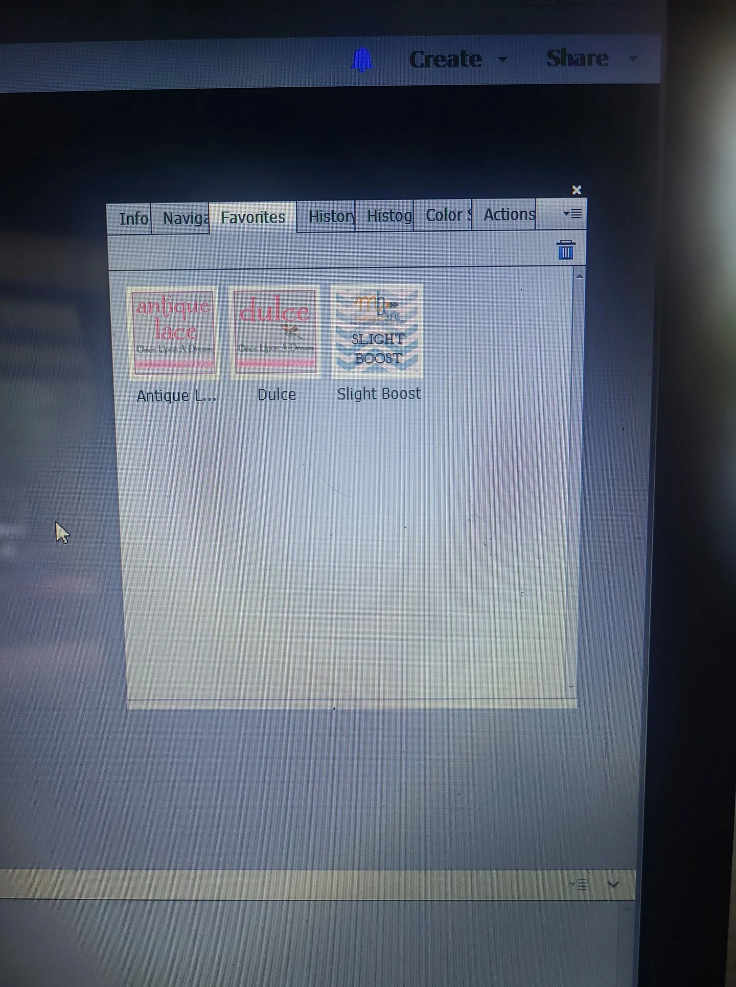 Below is a screenshot she provided showing 3 actions, accordingto her they are actions) in a favorites panel, in and older version of pse.