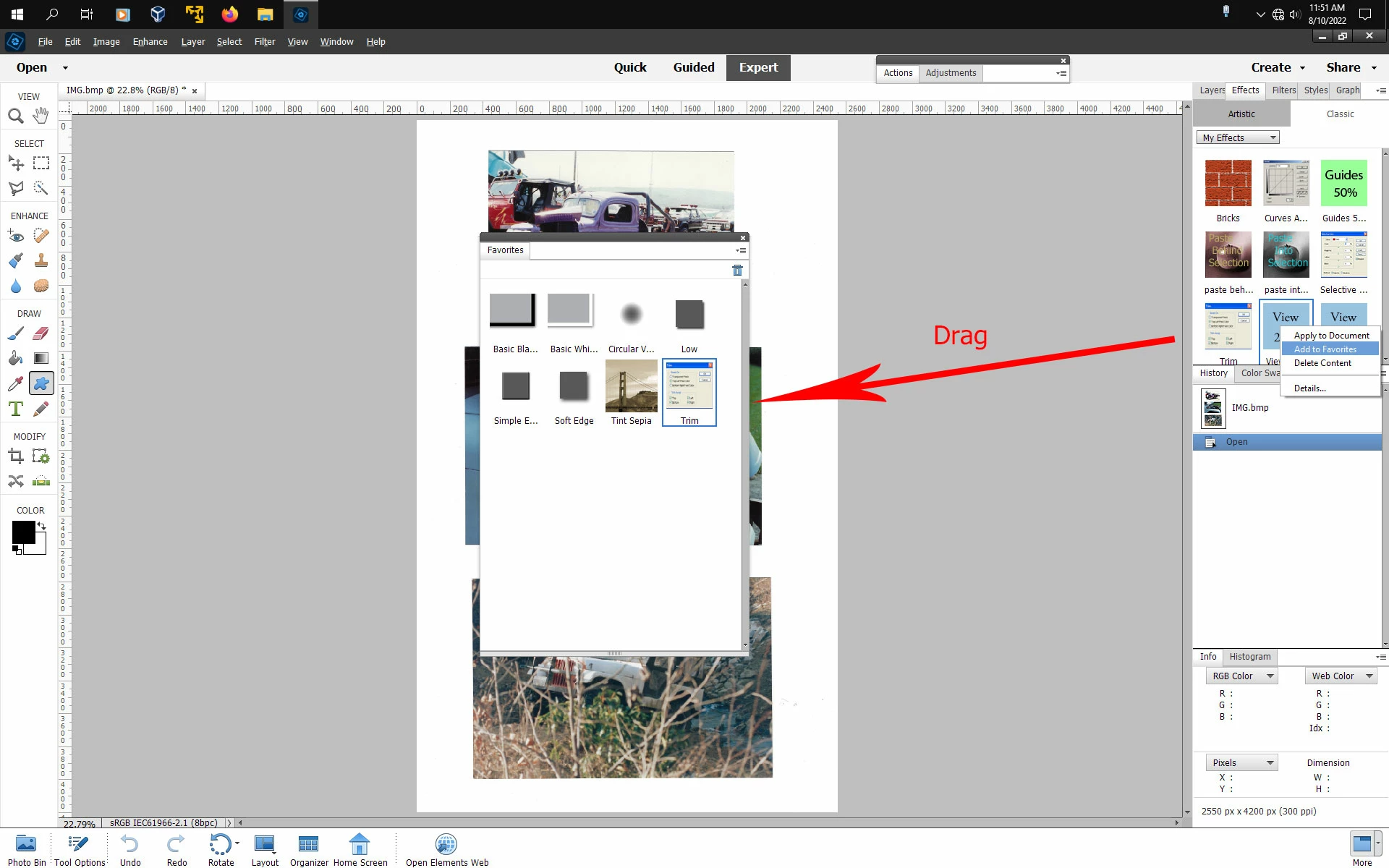 You can't simply just right mouse click and select "add to favorites"- at least you can't in pse 2022. Maybe in earlier versions.