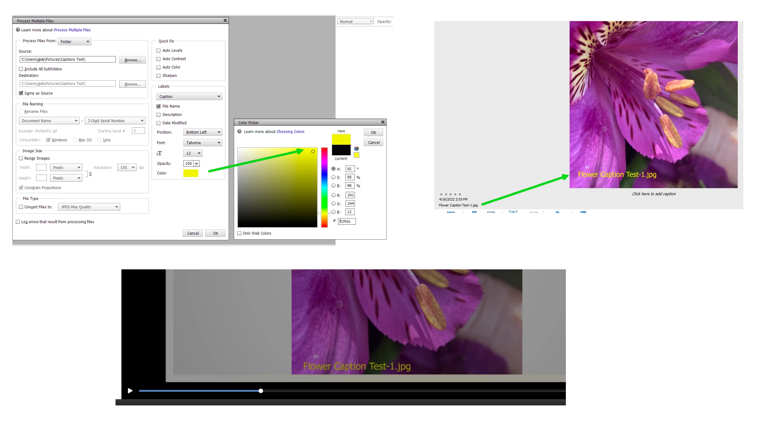 Adding captions to jpg photos in bulk in PSE 2022