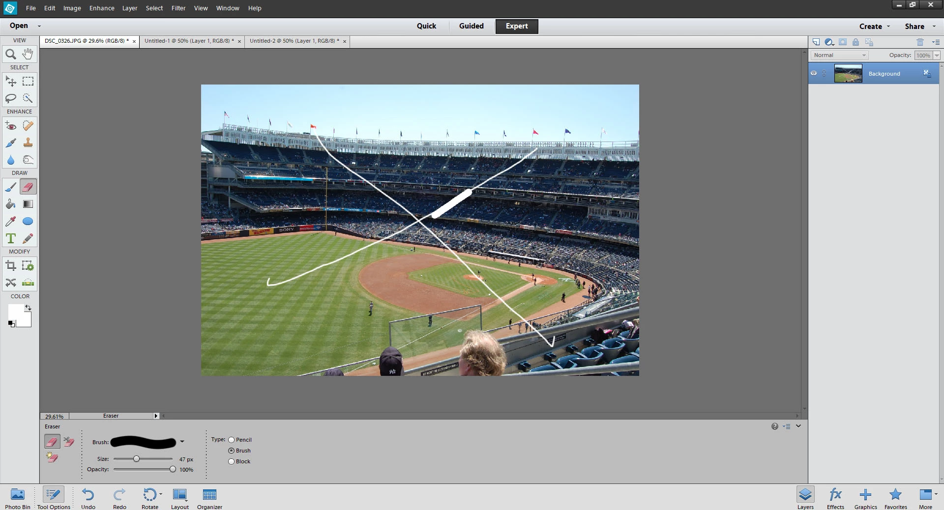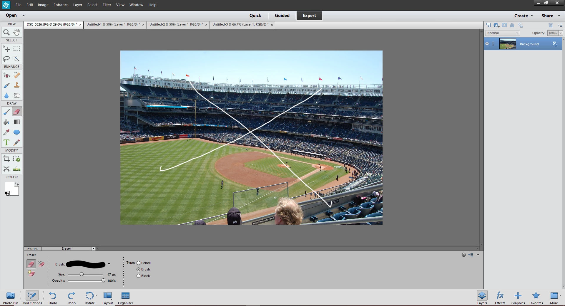 My eraser was working fine yesterday and then suddenly instead of erasing and leaving the base photo intact, it is erasing right down through everything and the under lying color which is showing (bsically making the eraser a paint brush".