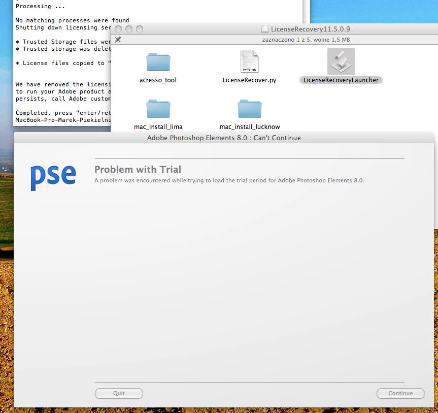 Adobe Photoshop Elements 8 Mac - "Licensing stopped working" on trial...