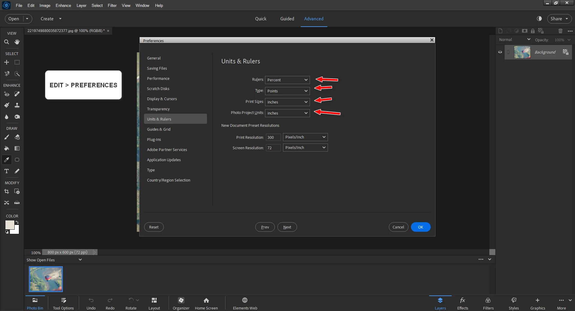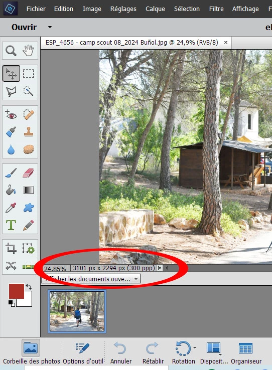 Affichage Dimensions des photos