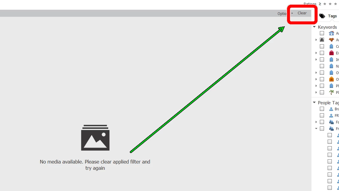 Newby question.  I put together an album yesterday consisting of vacation photos.  I named it.  When I go to click on the name of the album I get the error message "please clear all applied filters and try again". I have no idea how to understand or fix this.  Thanks for your help.  This is a newer version of Elements.