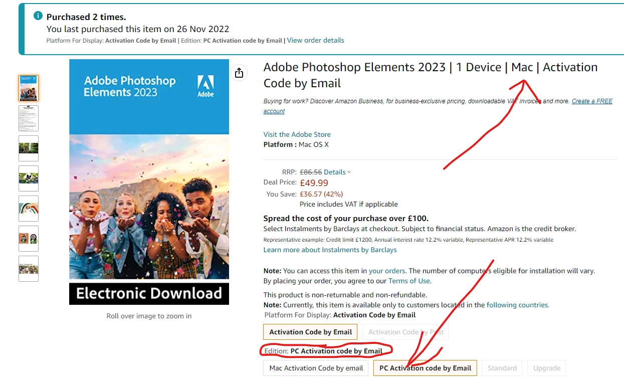 Amazon Purchase of Photoshop Elements 2023