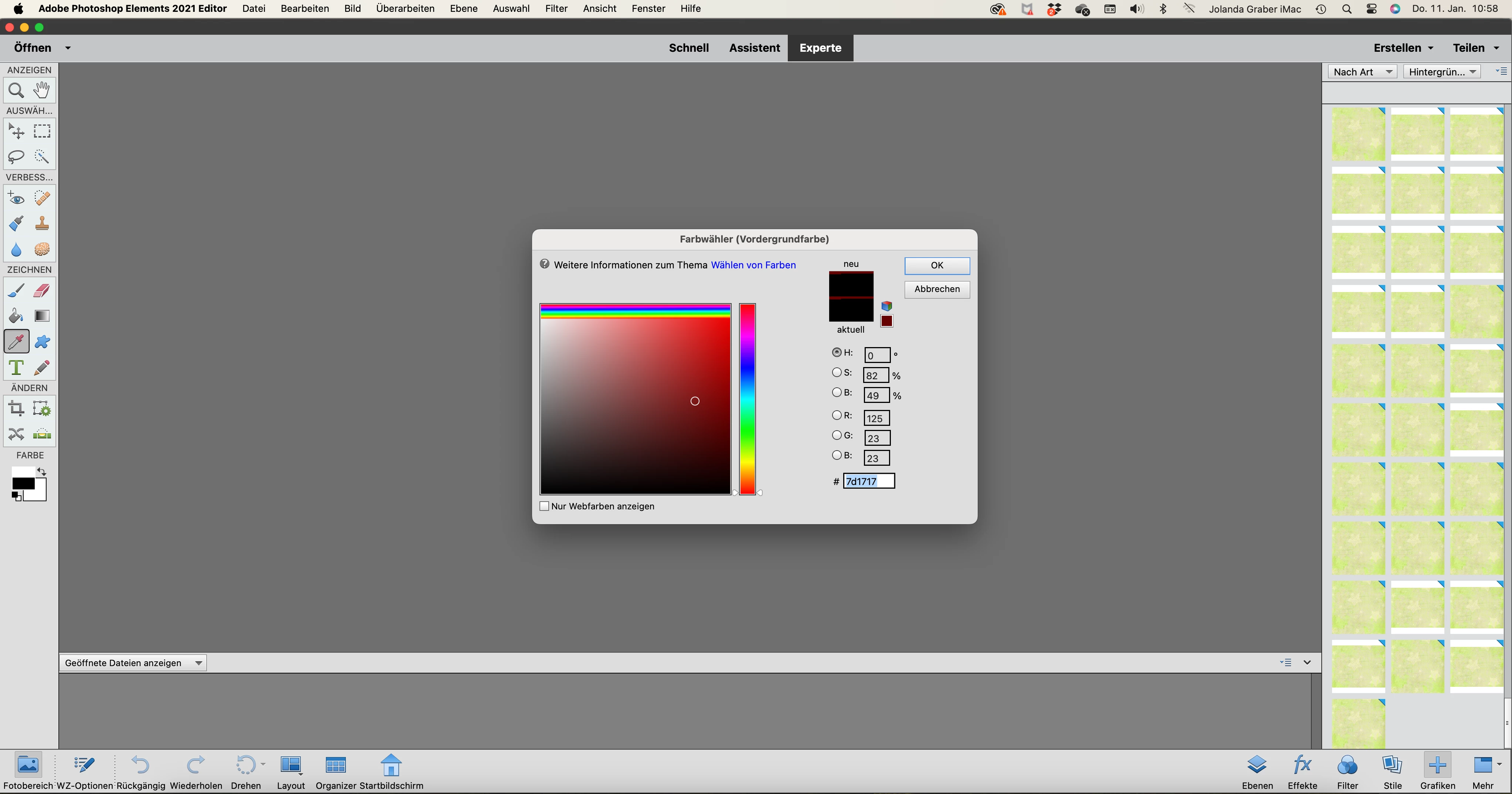 Die Farbanzeige neu/aktuell funktioniert nicht mehr richtig und auch die Vorschau auf die Filter, Hintergründe und Effekte zeigt nur noch jeweils ein Bild an.