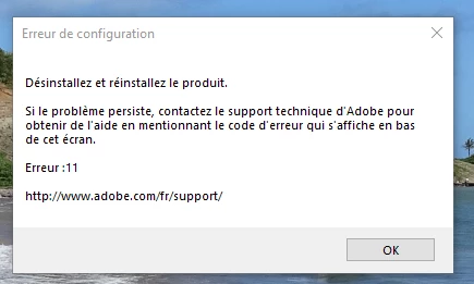 Au lancement de l'application : Erreur 11