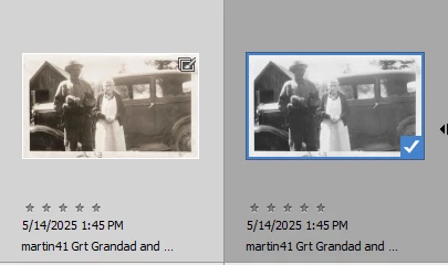 I use Auto fix for almost all my photos on an individual basis. I finished scanning many grey scale photos and saved them in a JPG Format. For some reason, the Auto Fix command is not a selectable option for many of the photos, yet is a usable option for a few. I know I have utilized the Auto Fix option for grey scale jpegs in the past, but I am at wits end why I cant use it now. Any insight and help is greatly appreciated. 2 examples attached ( Photo of young boy can be auto fixed, the photo of the elderly couple is an example where auto fix will not be an option)