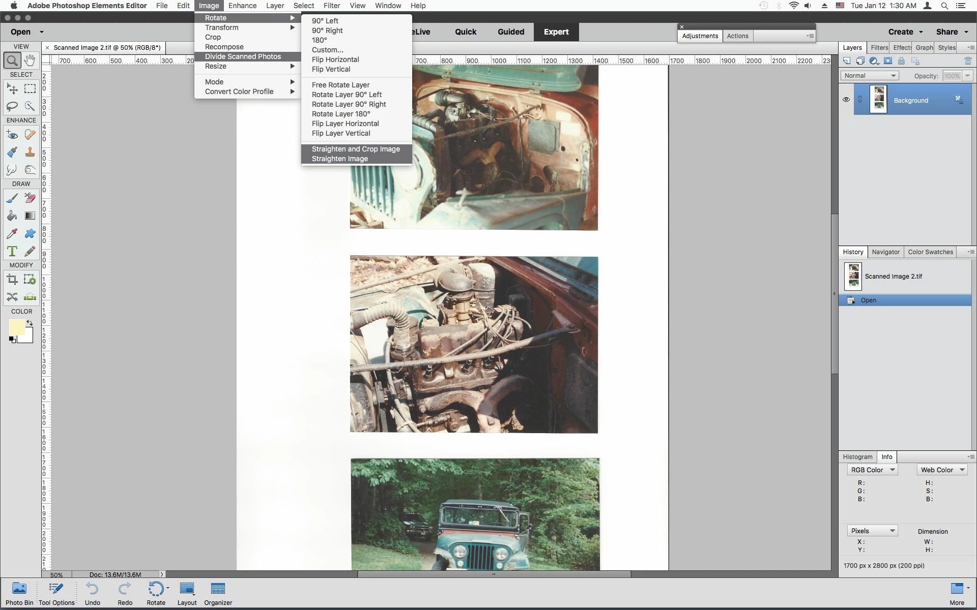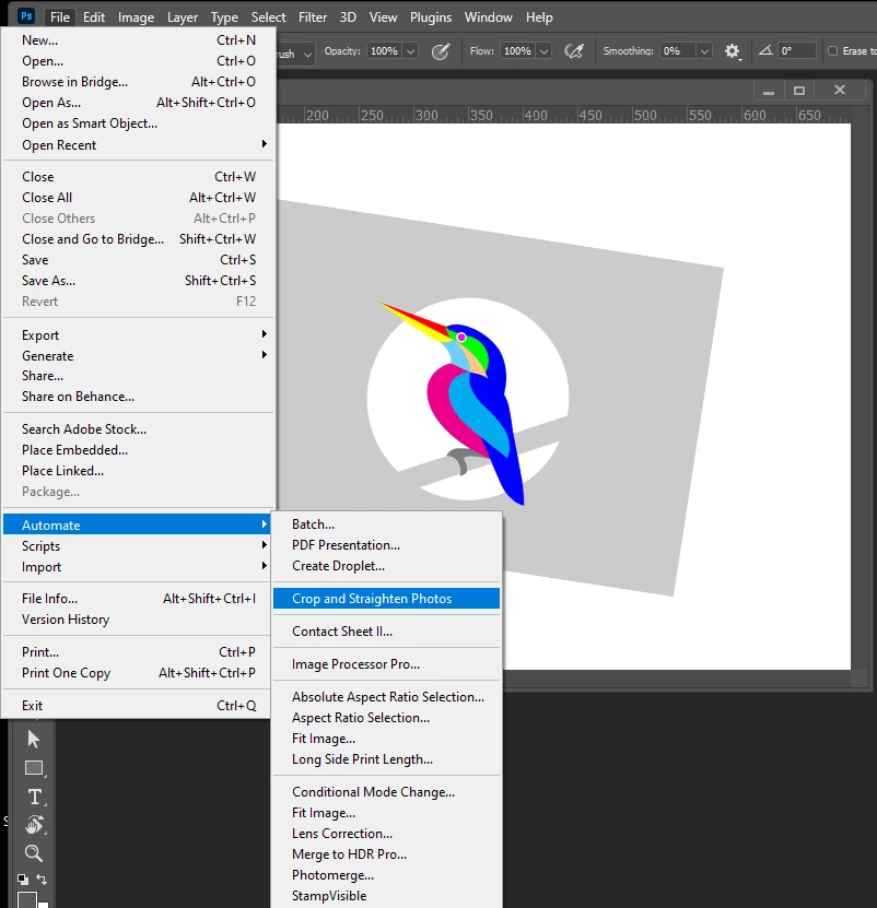 Automate crop and straighten - is this available in Photoshop Elements 2021?