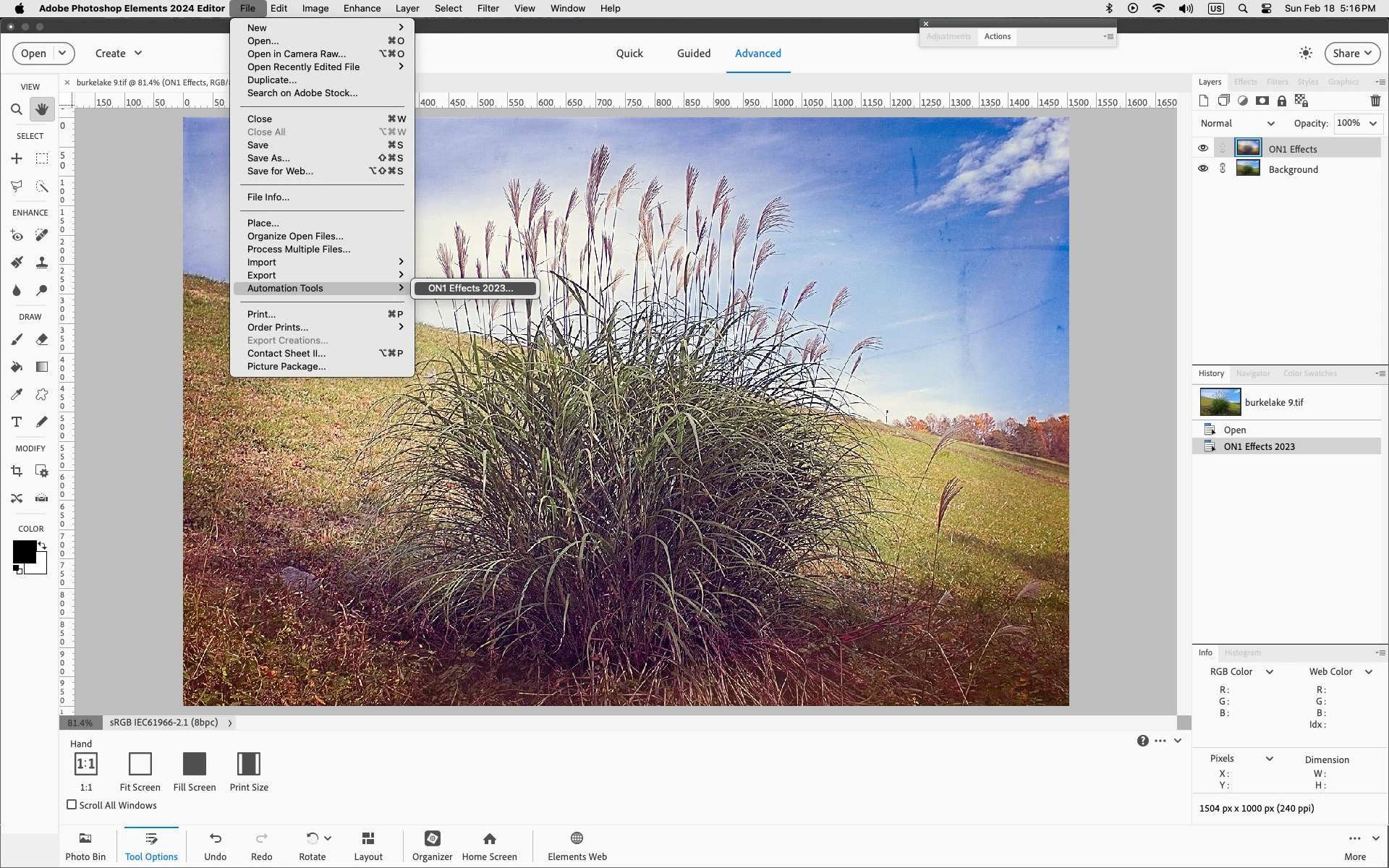 As far as Automation Tools, that's always greyed out in the default install of photoshop elements unless one uses a third party plugin or script that uses that menu, like, for example, ON1 Effects 2023.