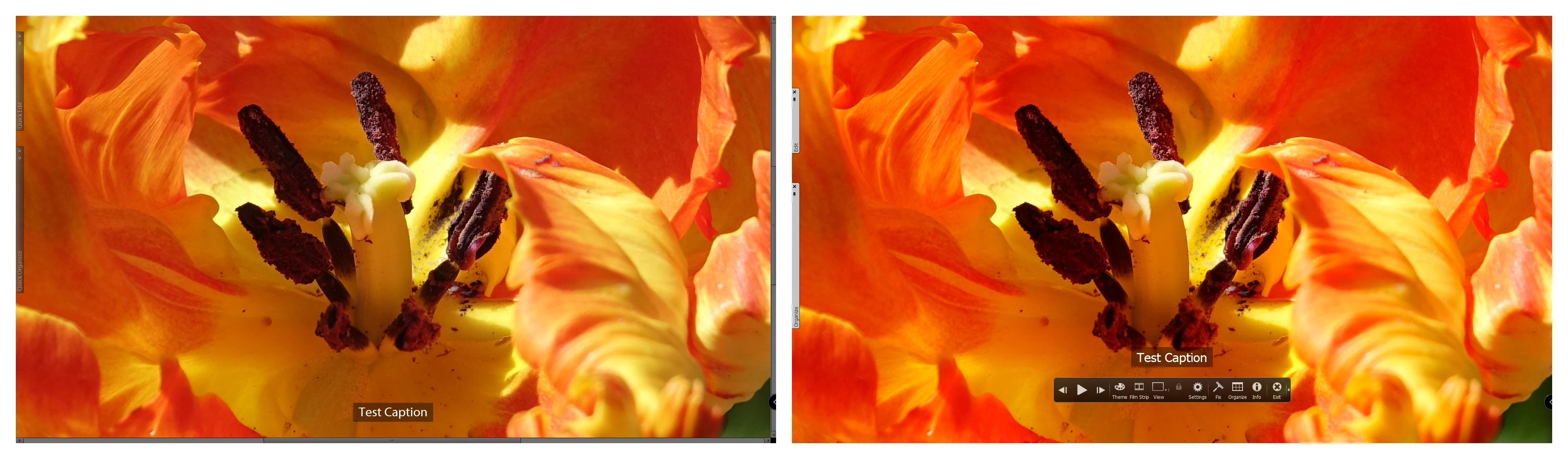 Die Bildtitel im Vollbildschirm werden ziemlich weit oben gezeigt und stören den Gesamteindruck des Fotos.