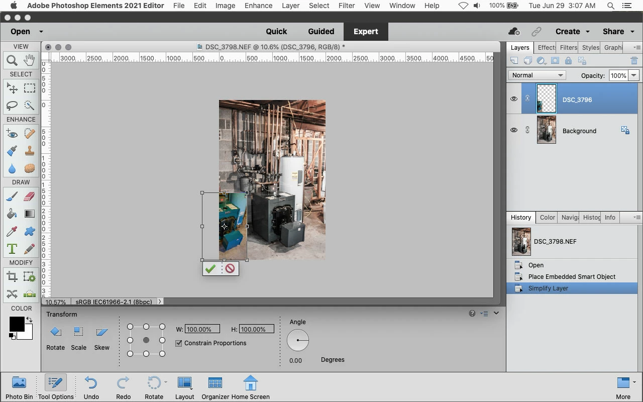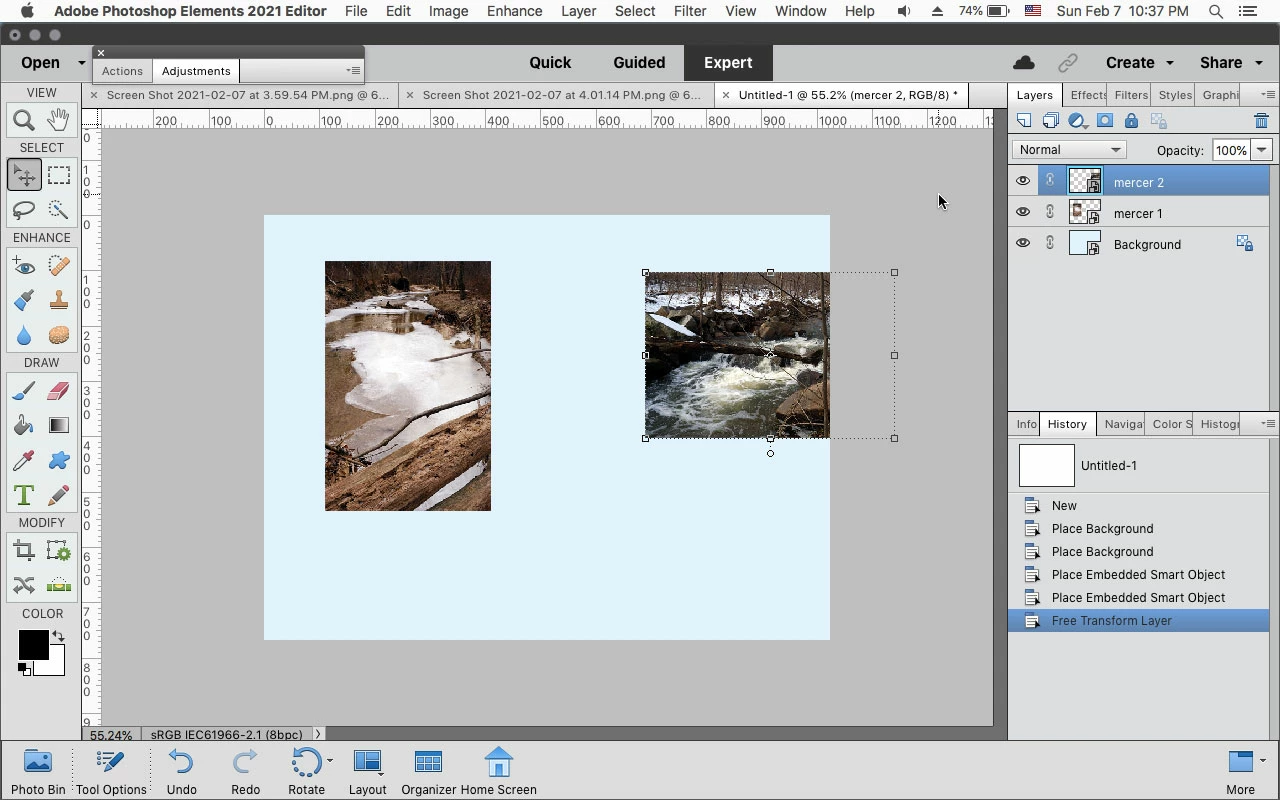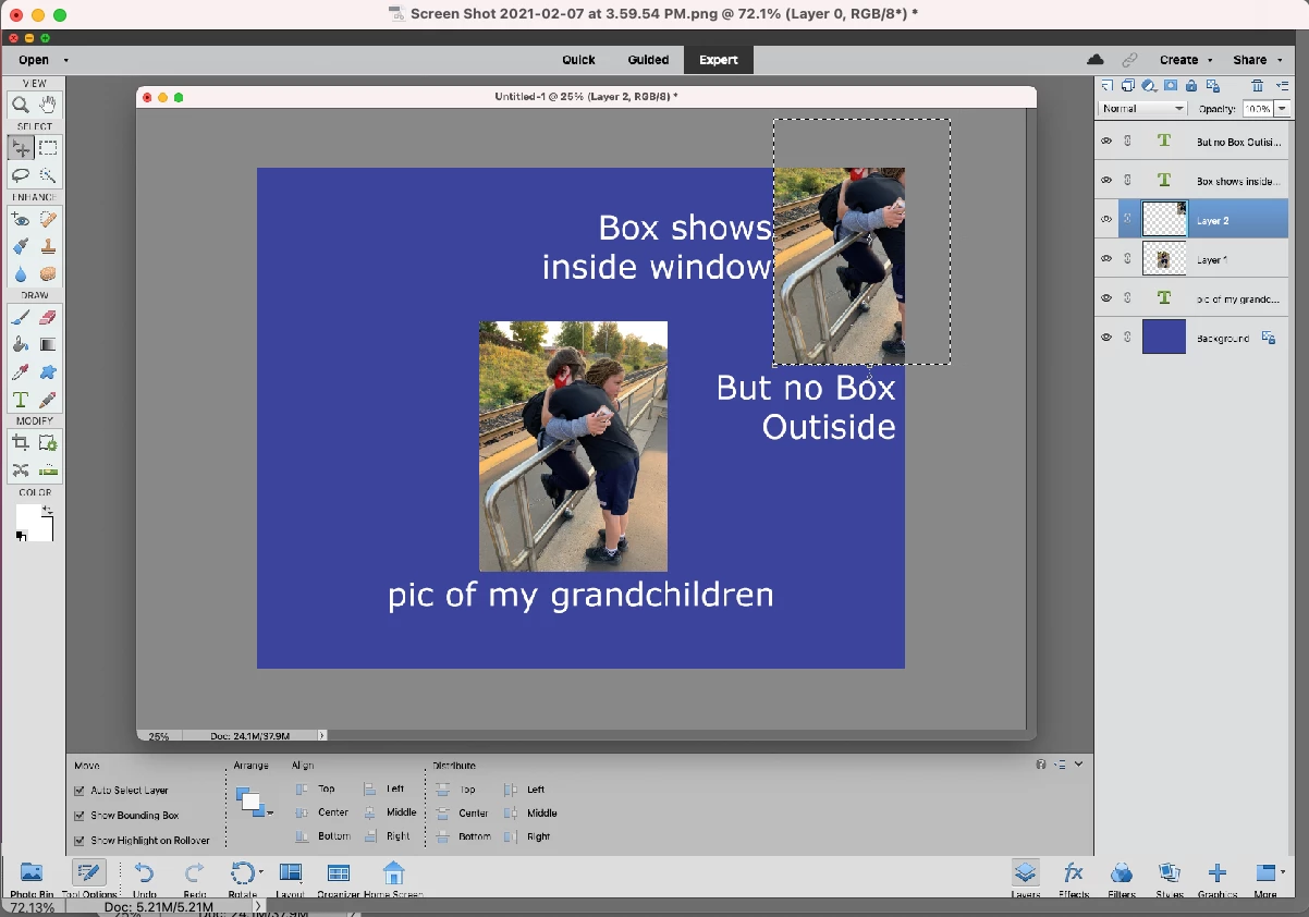 I have seen this issue on several forums for Photoshop CC but nothing for Elements 2021. I am used to using the old Photoshop CS5.5 where I could see the bounding box as the image overlapped the main window. With Elements, the bounding box with handles shows only inside the active window. If the pasted image is too large, then I have to maneuver it back and forth within the window to size it appropriately. Very inconvenient!