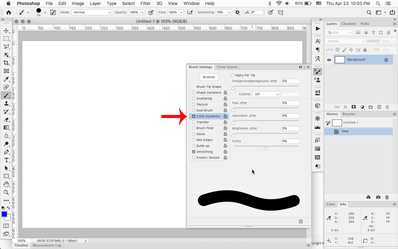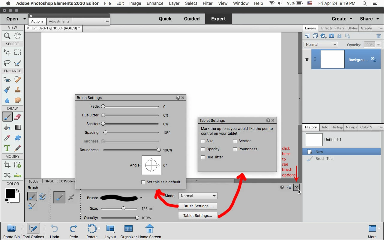 I began with black brush and everything works fine, even when setting brush settings for the xppen.