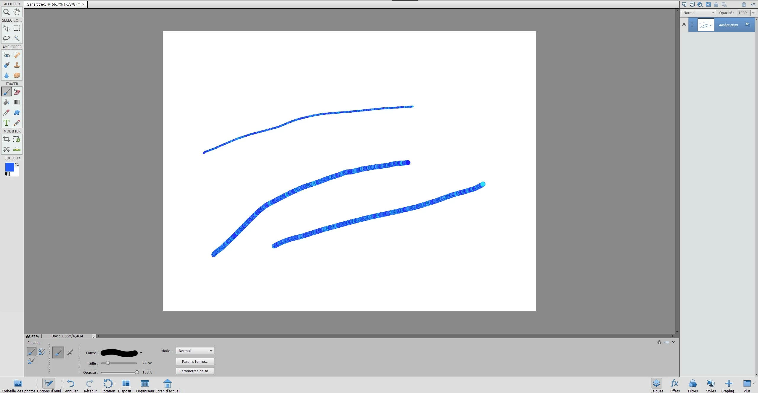 When i switched to blue (or any other colour) I get a line made of really different blues. I couldn't figure out how to get a line made with the only blue I chose. You'll see easily on the picture.