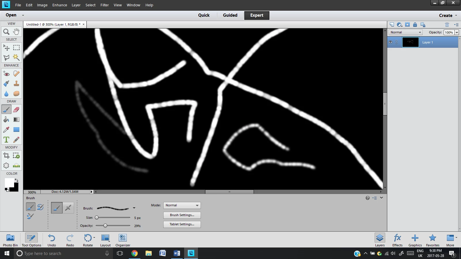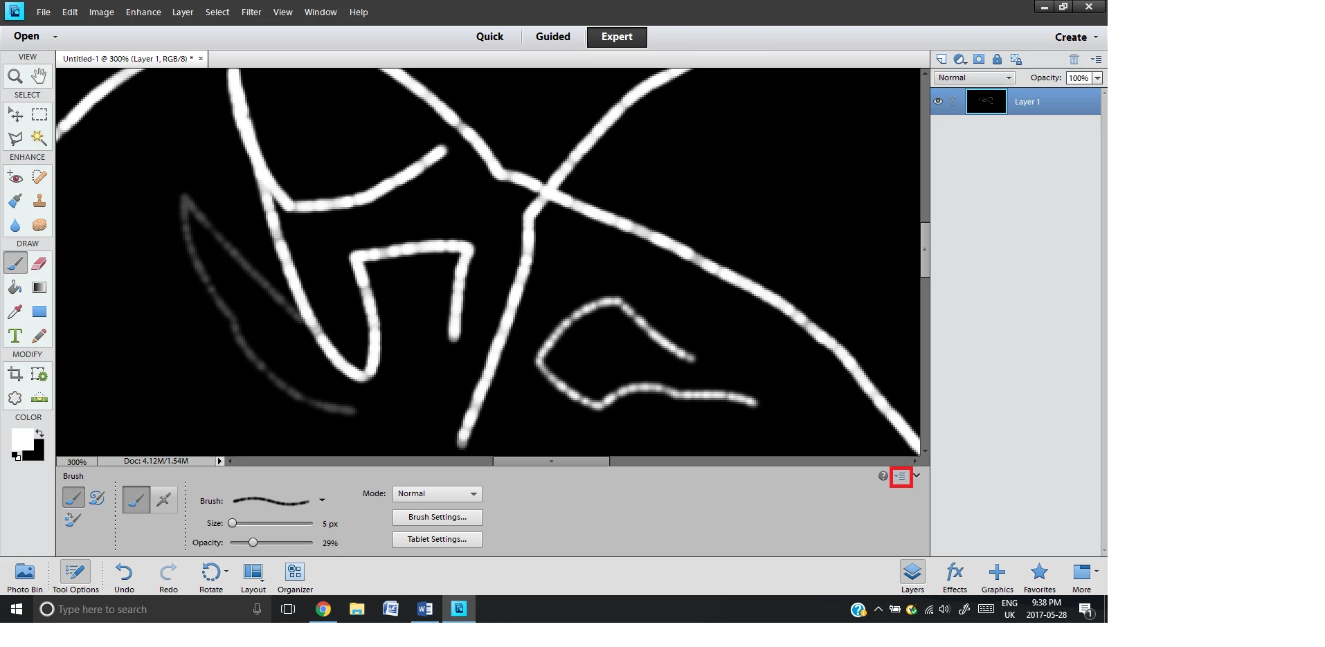 Ok, so I went to do some drawing with my digital tablet and I found that no matter what I did, my brush strokes were always being spaced out periodically. The picture below is the best I could get it to look and it still does not look crisp in the slightest. Tablet isn't on so it isn't that and the brush spacing setting is at 1.