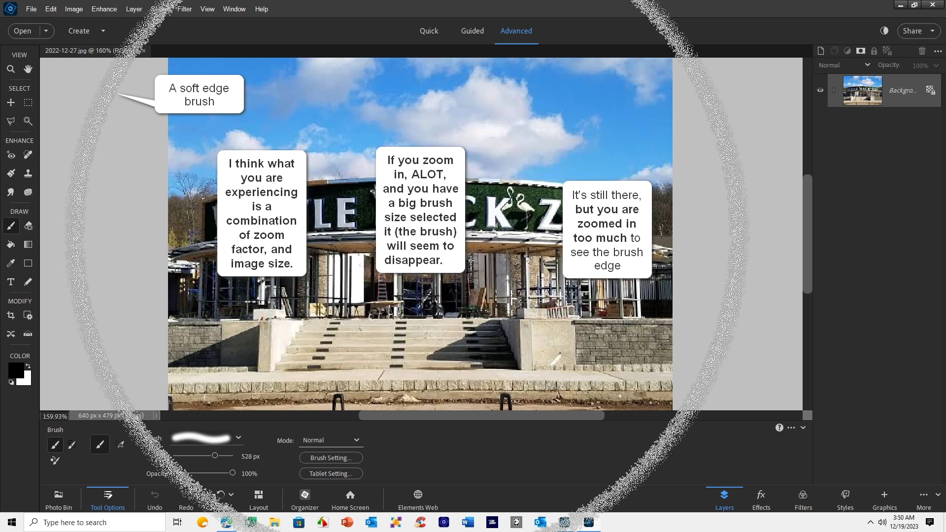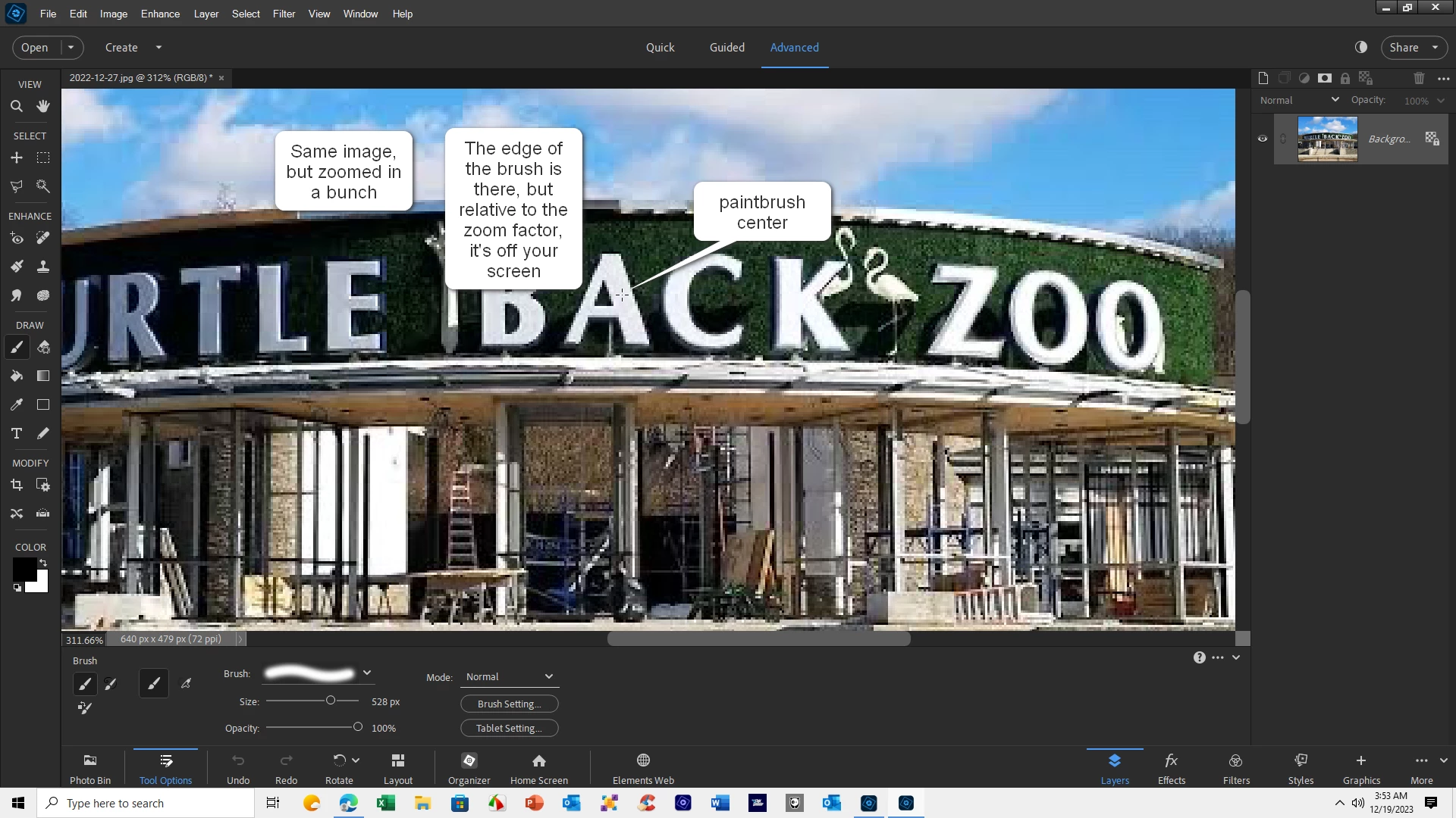 i'M getting really frustrated again! I can not get a brush tip to give me a brush tip that I can SEE. I get nothing but a cross hair which I can not SEE. no matter what size I make the brush, I get nothing but a cross hair---I need to see the size of the brush! Yes, I shut down the program and opened it again and I still do not get anything except a cross hair which I can not SEE. and, yes, I checked Preferences and have the full size brush tip checked.