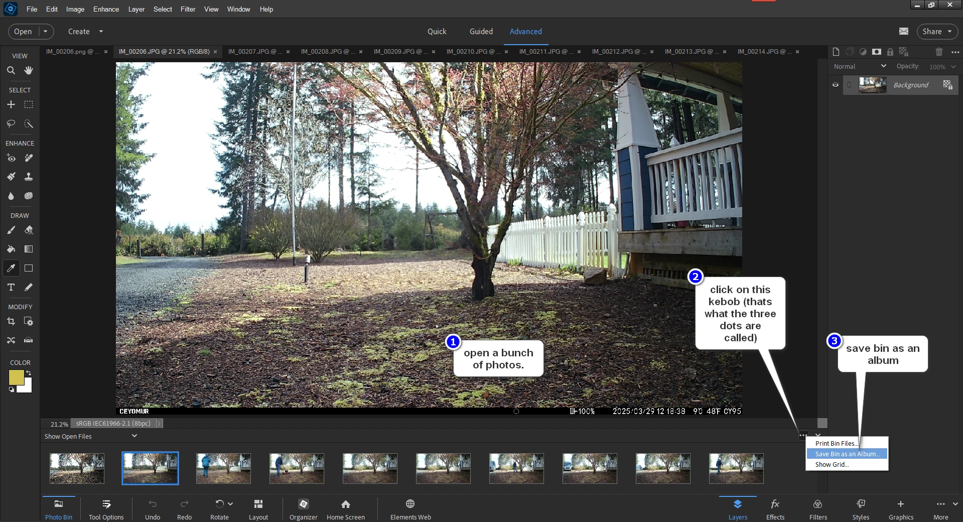 I am using Photoshop Elements 2025 on a Windows 11 laptop. When I want to view an Album in Full Screen on the device the only way that I could see to do this is the Slideshow feature which has a lot of “ornamental” presentation stuff which I don’t want. I just need to advance through the images sequentially and sometimes zoom in to a specific area of the photo. I could do this very easily in Photoshop Elements version 8 which I used previously. Its also easy in the Windows Photos application.