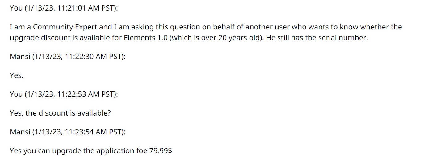 Can I get upgrade pricing for Photoshop Elements 2023 coming from an obsolete version?