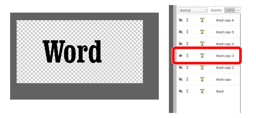 • Use the text tool to type the word (this will create a single text layer)