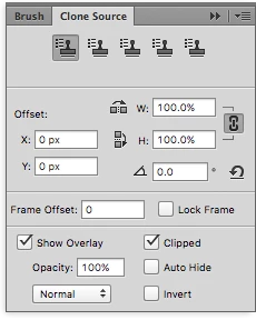 Every thing is have looked at on line says I should go to window and click on clone stamp and the a box should pop up to change axis numbers for rotating the clone image.