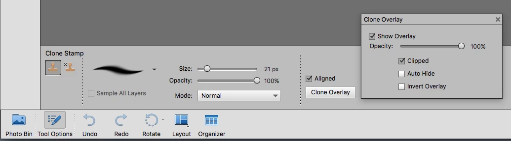 Can't find clone stamp tools to rotate v/y axis in PS elements 13