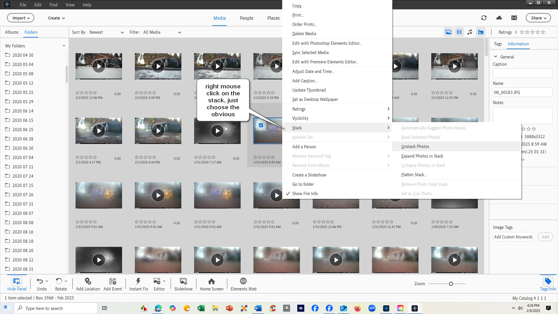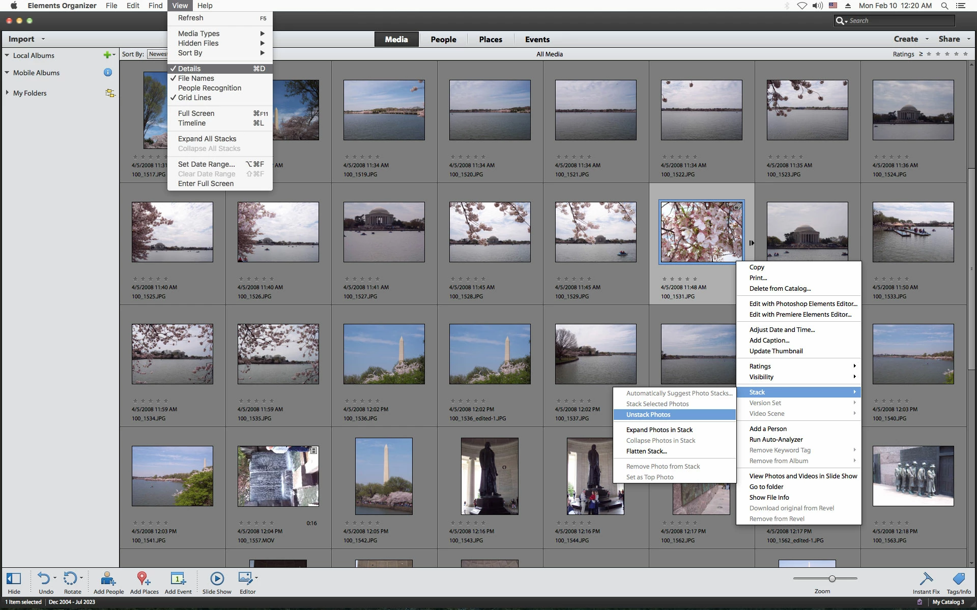 Can't unstack photos PSE 12