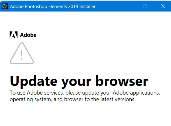 My PC hard drive failed. I installed a new 1 TB HDD, loaded Windows 11, Chrome, Edge, Adobe CC and Adobe Acrobat Reader. I can see my PSE 2019 license when I log into Adobe, but when I try to download it I get an error message that says I need to update my OS, browser and Adobe products. They are all newly downloaded and fully up to date.