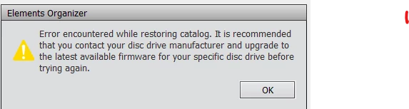 I'm trying to restore a catalog that simply disappeared (along with the Photoshop Elements app). I get this error (attached below) when trying to restore my catalog. I don't know what to do as it doesn't make sense to me since my computer is only 1 1/2 yrs old. Can anyone advise? Thank you.