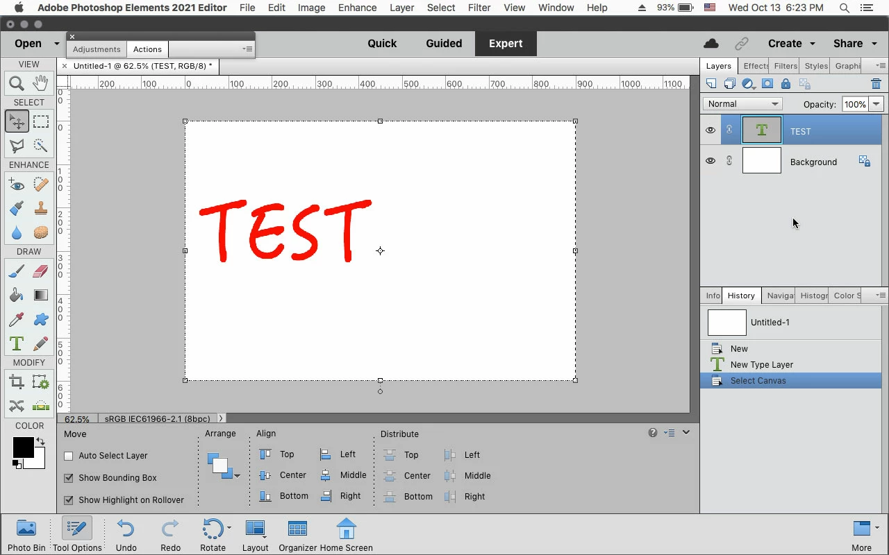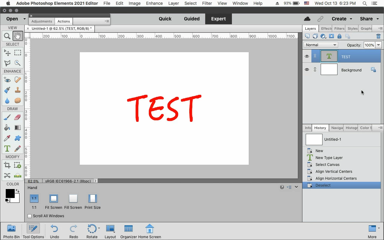 Centering text with Photoshop Elements 2022