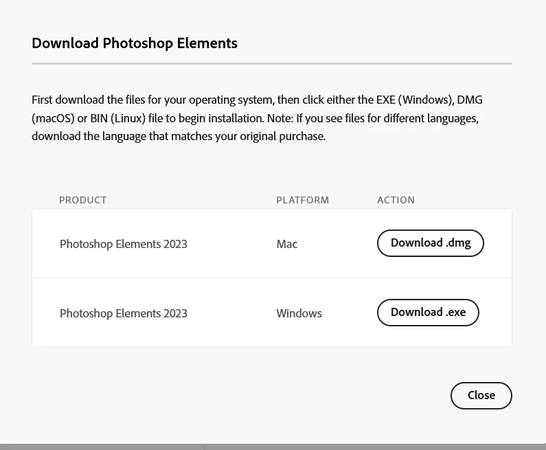 I own Photoshop Express 20.0 Windows Platform. However, I own a Mac Studio Sonoma 14 currently. How can I download Mac .dmg Install?