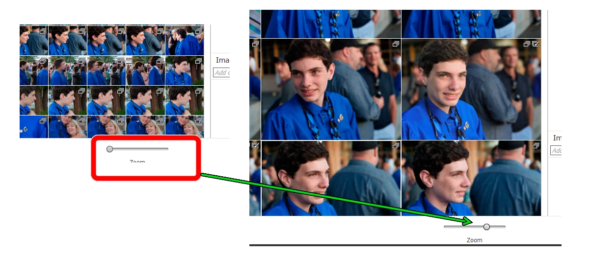 Is there a way of enlarging these picture thumbnails to make it easier for him?