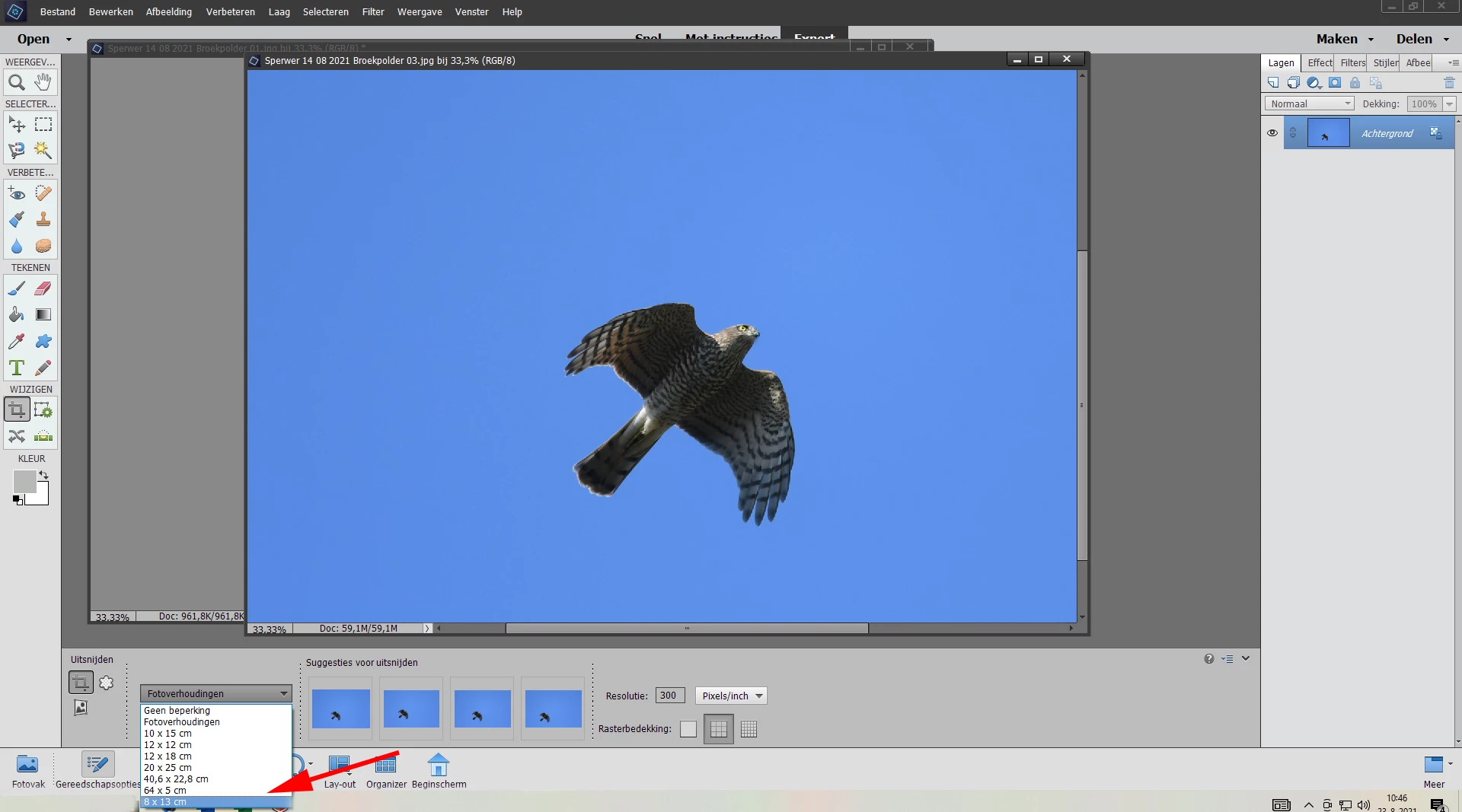 It then jumps to: 'photo proportions' (in screenshot: fotoverhoudingen) and then nowhere in the list the option 'custom' (in screenshot: aangepast) is to be found again.