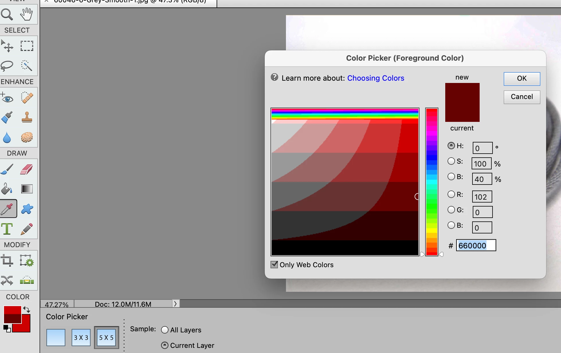 There is distorted color at the top of the color picker square, and the foreground color square is split into two colors. I have tried reseetting preferences and restarting Photoshop, and I have uninstalled Photoshop and reinstalled it. I am using Photoshop Elements 2021 Editor and the MacO|S is Sonoma 14.0. Does anyone know how to fix this?