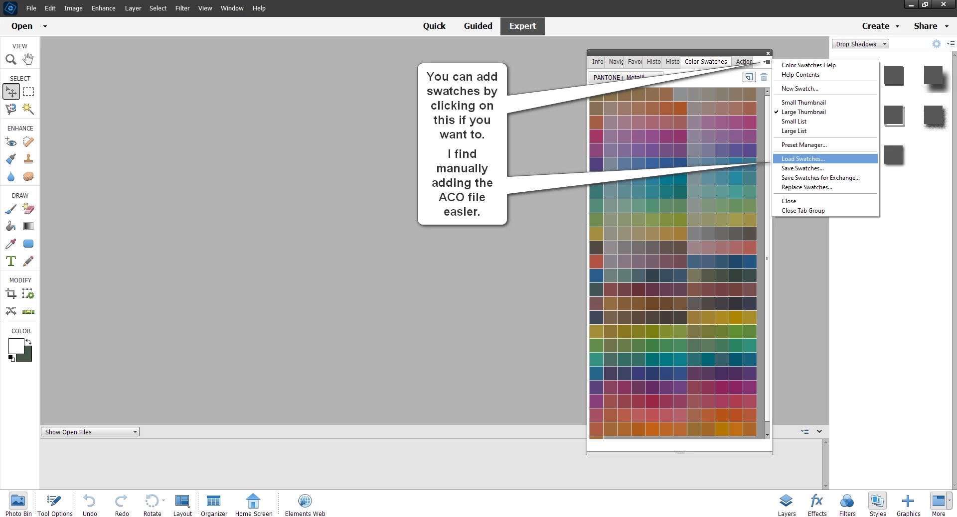 How do I import color swatches from Photoshop Elements 2022 into Photoshop Elements 2023?