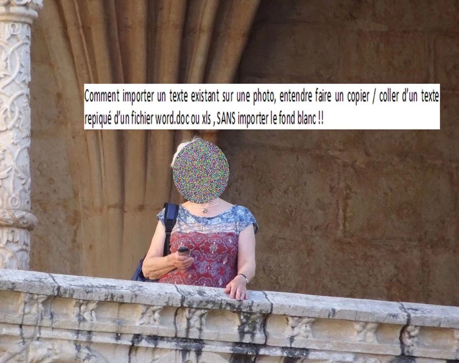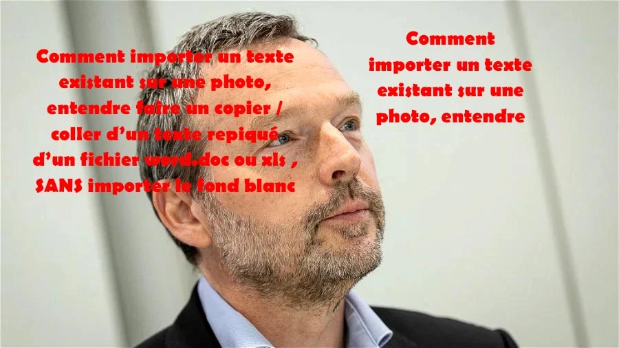 Comment importer un texte existant sur une photo, entendre faire un copier / coller d’un texte repiqué d’un fichier word.doc ou xls , SANS importer le fond blanc !!