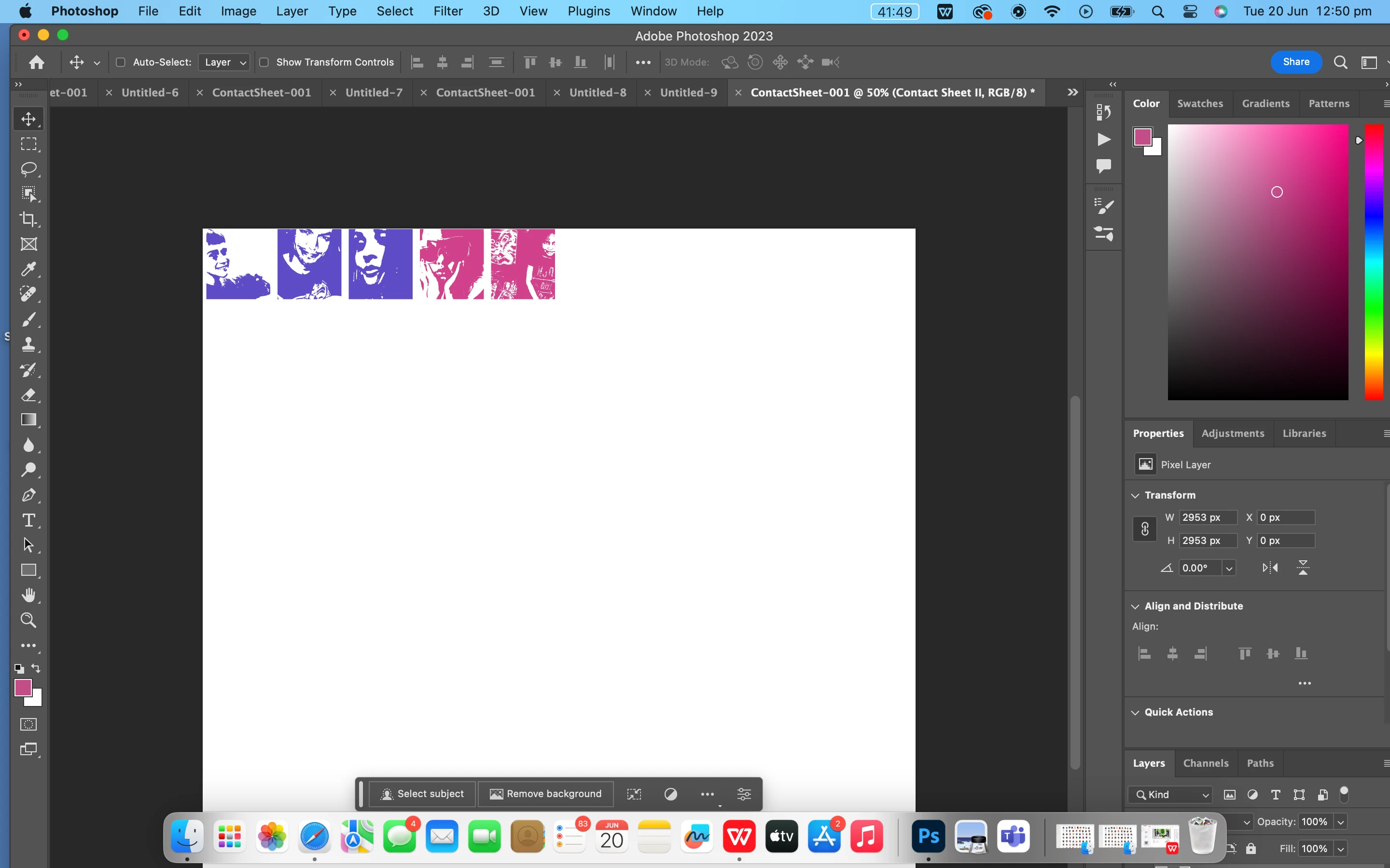 Hi, as seen in the photo below i am trying to create a mosaic (image 1) through using the contact sheet, but i am wanting the images of the colours pink and purple to alernate (image 2) in my folder they do alternate but when i put itnto the contact sheet it reverts it back (back to image 1). i would be greatful if someone could please help me out. kind regards Elise
