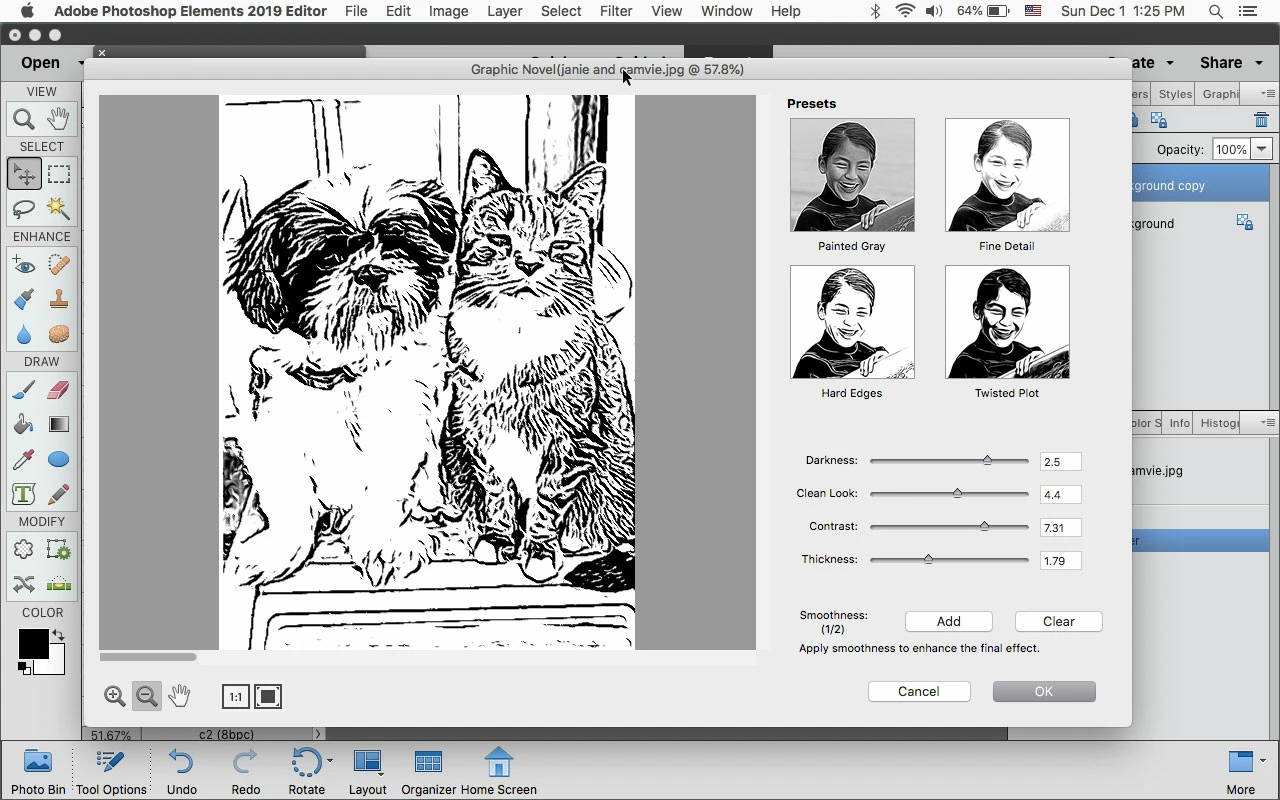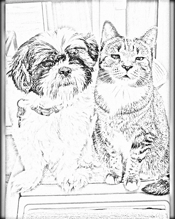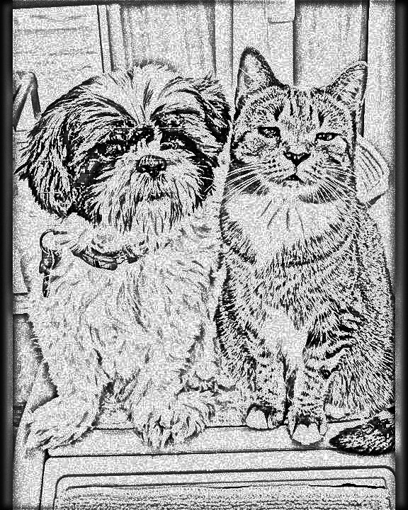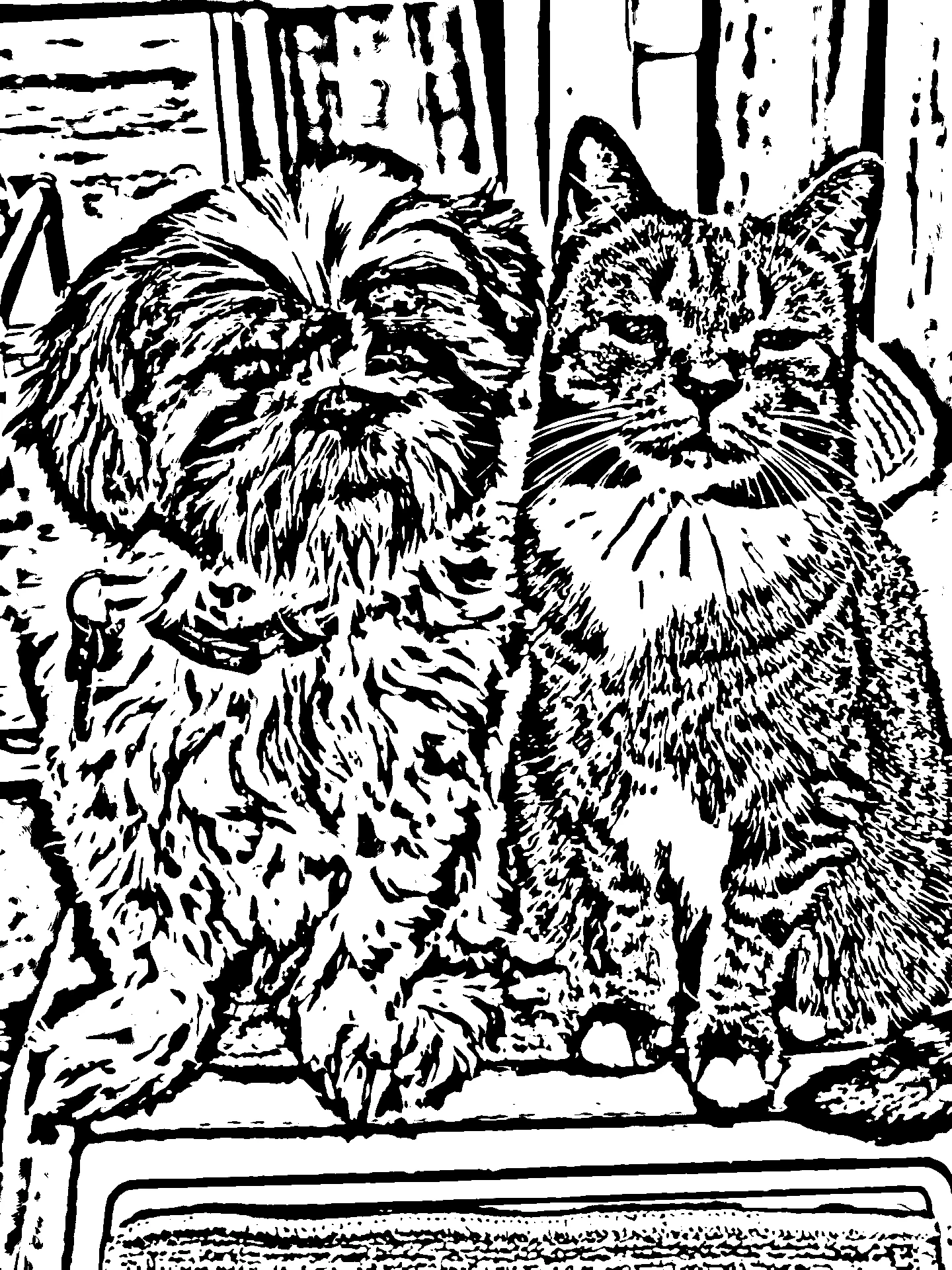 I am having problems getting my lines to a consistent level and getting rid of shading on the drawing. I am new to photoshop elements Attached are pics of the photo I am using and the results I came up with. Any tips on what to do to improve welcomed. This is going to be a coloring book for adults for a cage free no kill feline rescue center