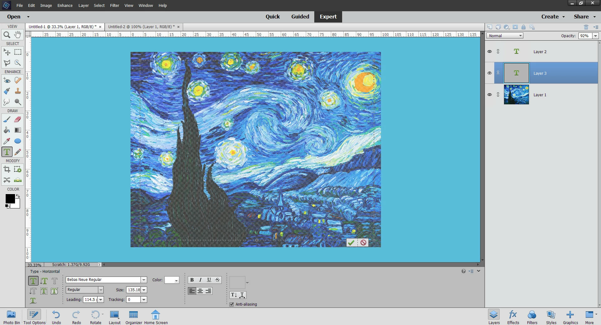 Using Glenn's method will only paste a new layer with the Word text into the image. The text will not be editable and will have an opaque background. You will also create an empty text layer.