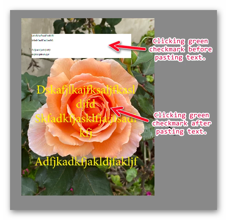 You need to paste the text into the text box before clicking the green checkmark. (I'm sure Glenn knows that and was just a little too quick with his instructions.)