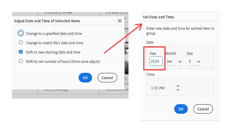 Correct year of posting in Album. Year setting on camera was wrong. How do I edit the year?