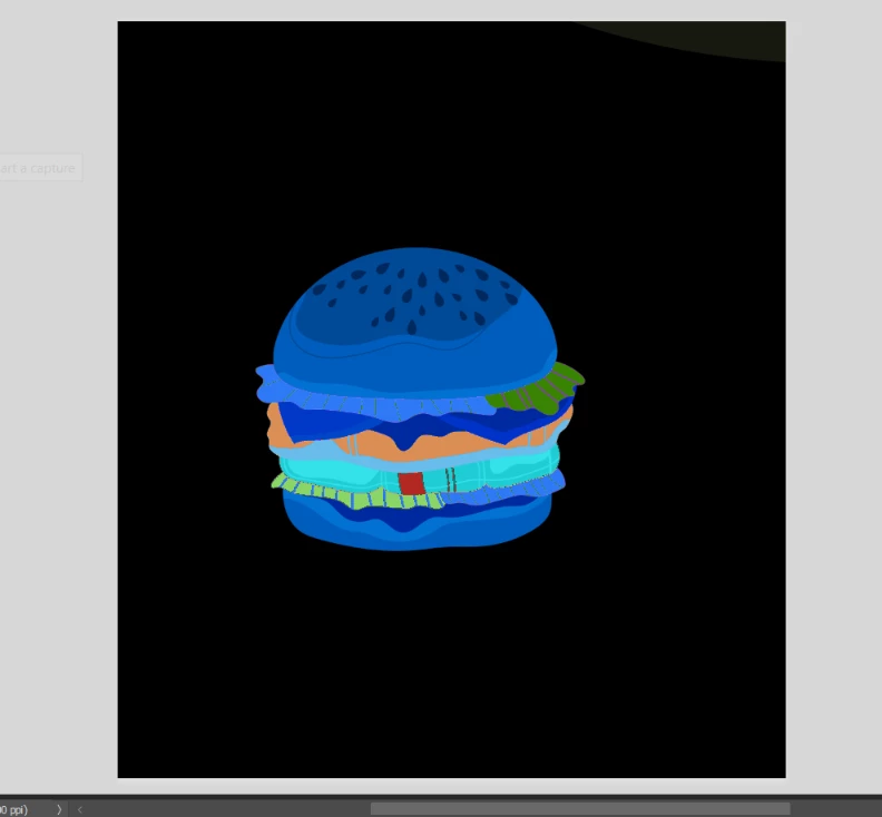 I am trying to create a graphic for a t-shirt. I can add a photo(in this case, a hamburger), but when I try to add text, I get a black box and the photo turns blue. What is going on? How do I add text above and below the photo without getting the stupid black box, and keep the original colors of the photo?