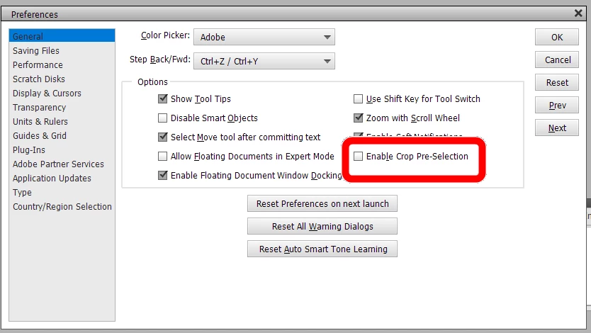 Hi, Any one know how to disable the "Crop Suggestions" functions?? Very frustrating...